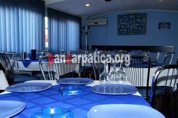 Imagine cu barul-restaurant al pensiunii Lebada de unde poti servi mese copioase si bauturi variate
