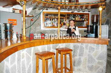 Imagine cu barul din Vila Ecotur -Ceahlau unde turistii pot servi o gama diversificata de bauturi alcoolice si vinuri