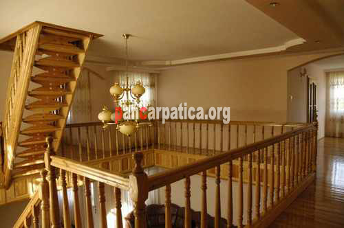 Imagine scara din lemn in interiorul pensiunii Alex din Manastirea Humorului