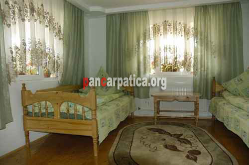 Imagine cu interiorul unei camere cu 2 paturi simple mari din pensiunea Alex-Manastirea Humorului