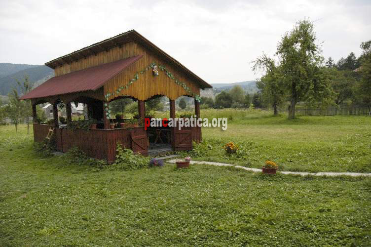 Imagine cu foisor din lemn situat in curtea Vilei Andreea din Manastirea Humorului