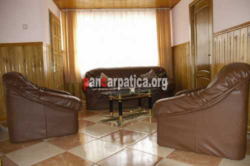 Imagine hol luminos, cu mobila moderna, canapele si fotolii comode in Vila Andreea din Manastirea Humorului