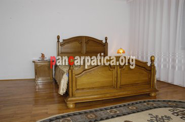 Imagine camera cu pat matrimonial mare si elegant in pensiunea Casa Laur din Manastirea Humorului