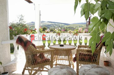 Imagine terasa in pensiunea Casa Laur din Manastirea Humorului cu decoratiuni discrete