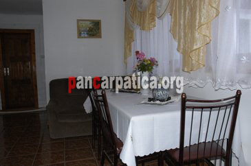 Imagine cu livingul frumos amenajat al pensiunii Emilia din Sucevita cu o capacitate de 10 locuri