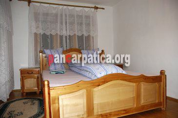 Imagine camera cu pat matrimonial mare si curat in pensiunea Casa Cristi situata in comuna Sucevita