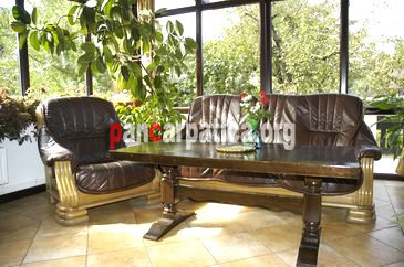 Imagine interior cu canapea confortabila, masa din lemn, decorata cu flori la pensiunea Calin din Vama